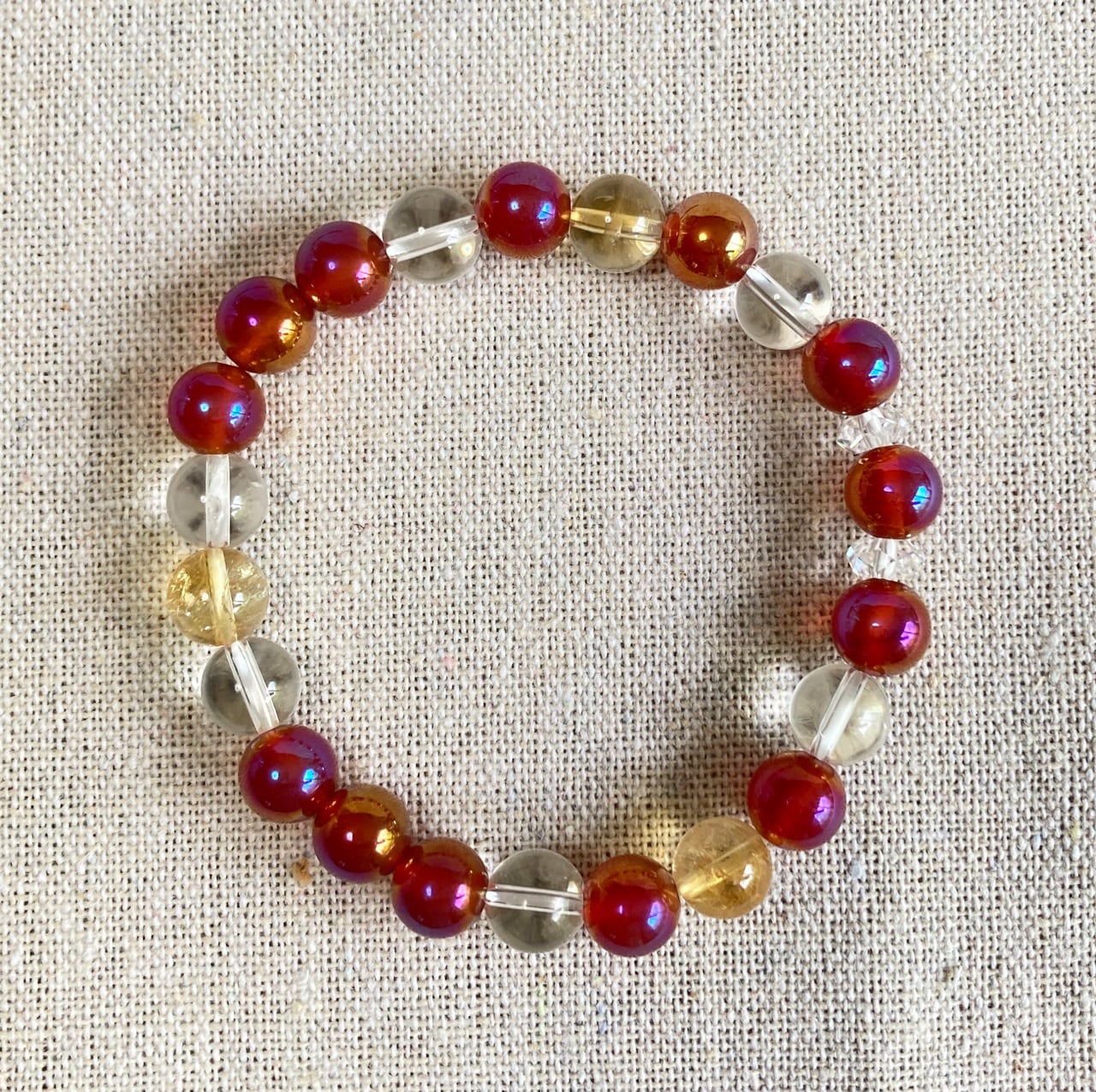 天然石のブレスレット(カーネリアンオーラ×レインボーシトリン×水晶)