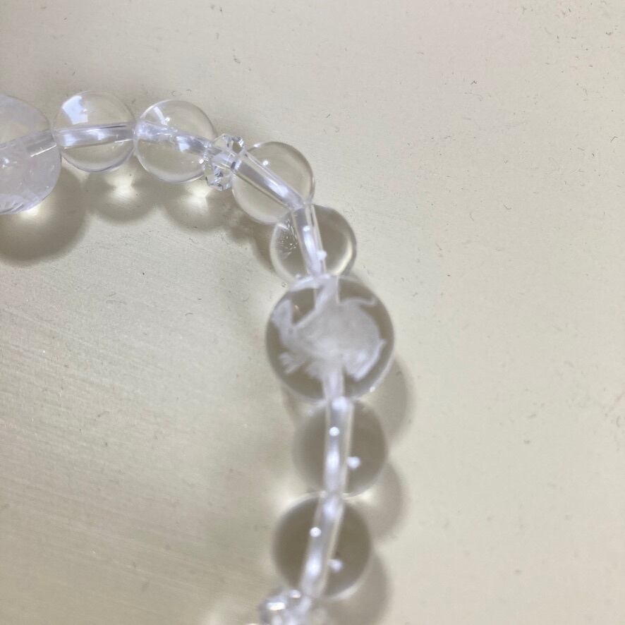 ・天然石 水晶 12㎜玉 四神獸彫り(青龍・白虎・朱雀・玄武)